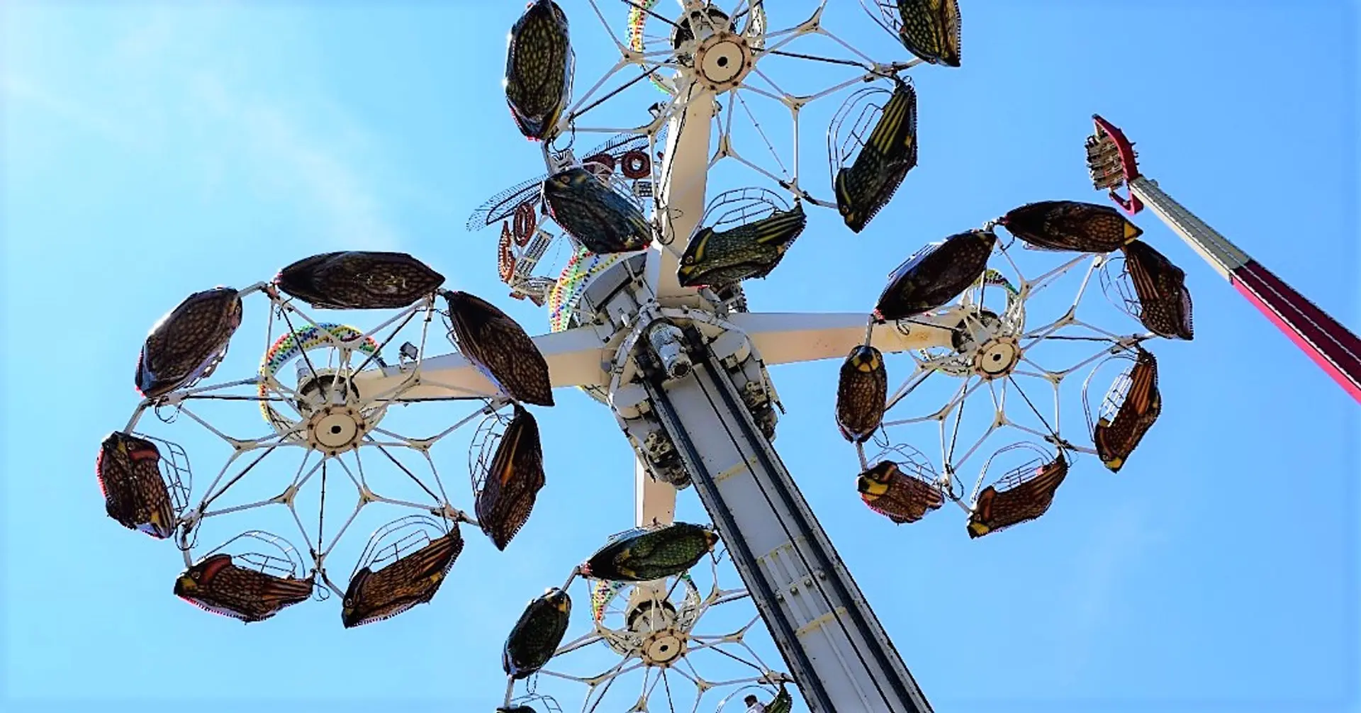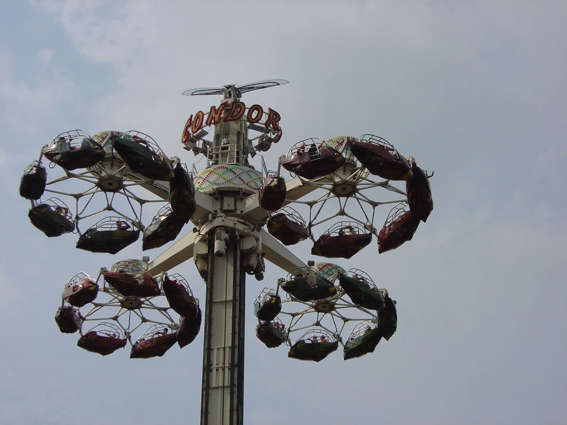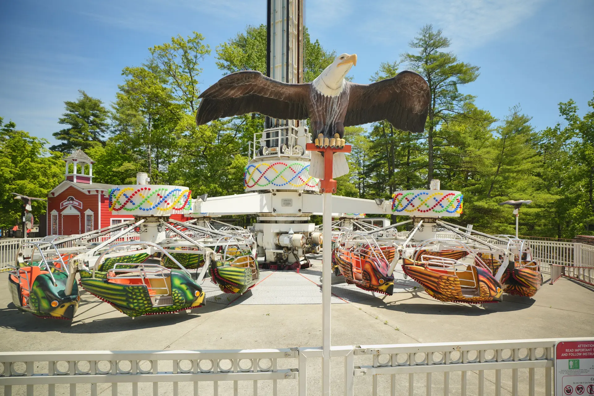 Your bird car rises to the top of a central tower as your flock starts to fly in a circular formation. The view of the park is incredible from a whopping 105 feet in the sky, giving you a literal birds’ eye view. These birds are flying faster and faster, cutting through the air. You’ll swing wildly out to the side as your condor banks high on the wind.